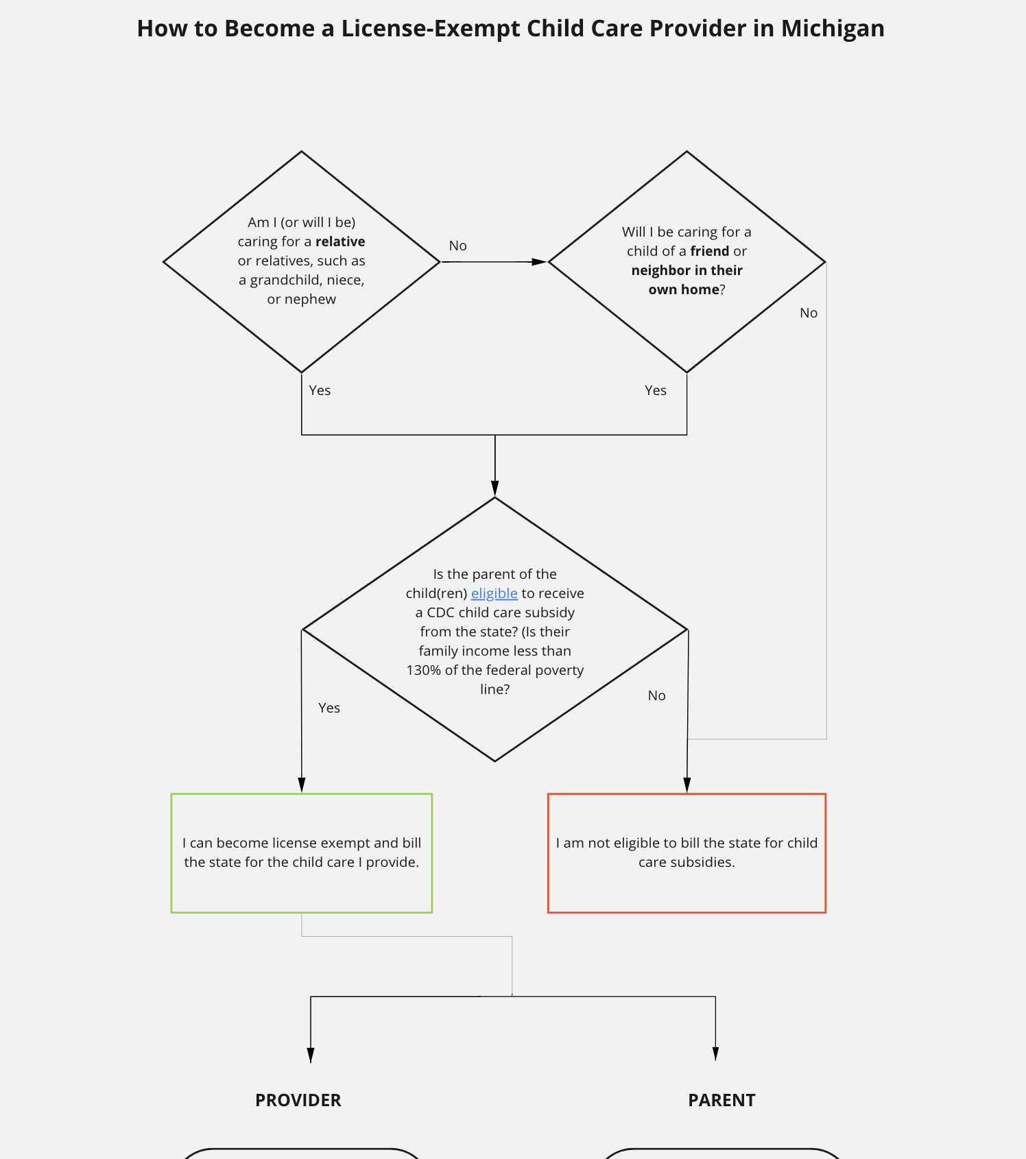 Family, Friend, and Neighbor (FFN) child care providers are a crucial but often overlooked part of the child care landscape, especially in communities like Flint, Michigan, where many parents find that other child care options do not accommodate needs such as non-standard work hours, transportation, and cultural preferences. While state and local programs exist that can support FFN providers financially and logistically, many of these resources go unused. How might we help FFN providers overcome barriers to accessing assistance and resources?